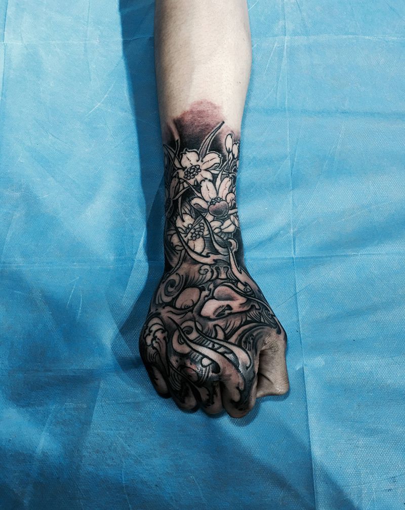 当前位置: 首页 >宁夏银川市纹身店-仰渡刺青纹身图案>唐狮/手背纹身图片_手部新传统纹身图案
