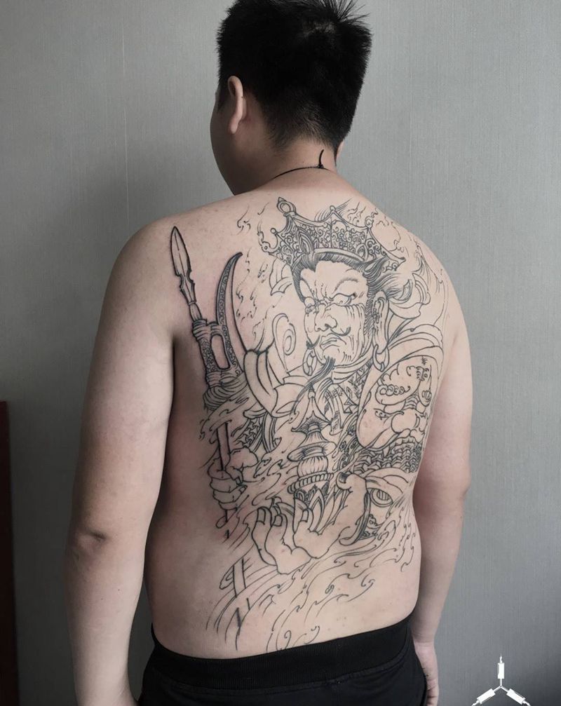 • H霸气全彩满背钟馗纹身图案