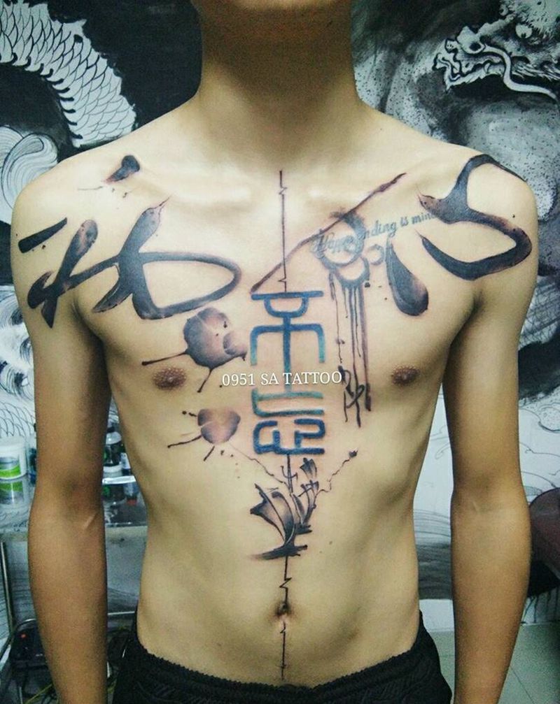 • T关于私处得爱!纹身图片_成品腹部清新字符图腾纹身图案