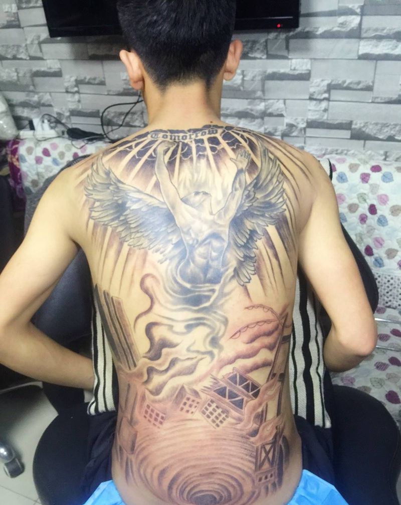 • 纹身吧推荐的披肩图腾半胛纹身图案作品展示