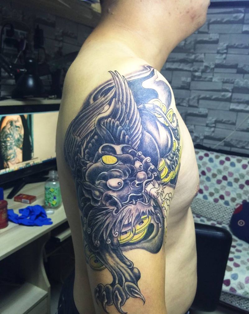 • 纹身吧推荐的披肩图腾半胛纹身图案作品展示