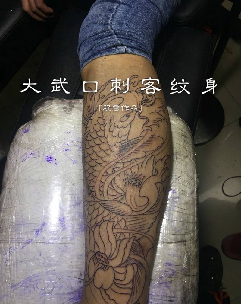 • T网红王老大花腿龙纹身图片_腿部新传统纹身图案