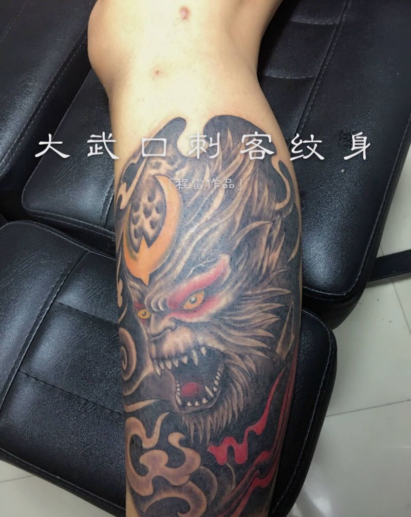 • T网红王老大花腿龙纹身图片_腿部新传统纹身图案