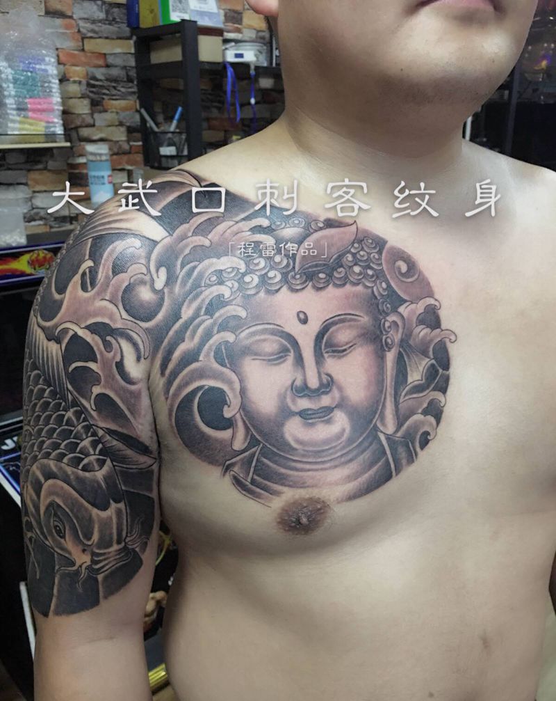 半甲遮盖纹身图片_肩部胸部纹身图案