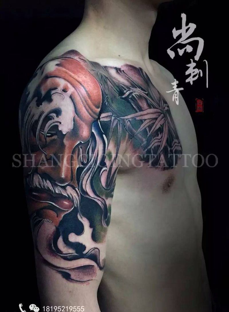 老者纹身图片_成品肩部手臂胸部传统国画人物植物原创纹身图案