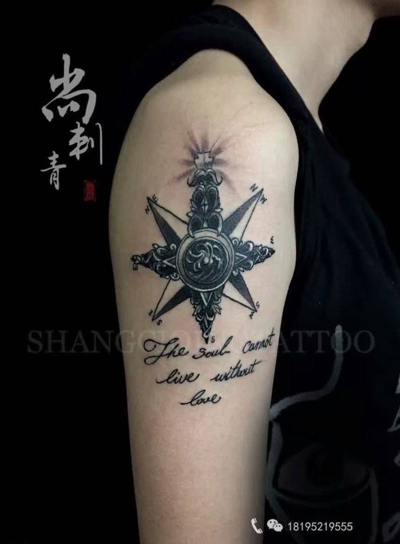 指南针纹身图片_成品手臂欧美清新图腾纹身图案