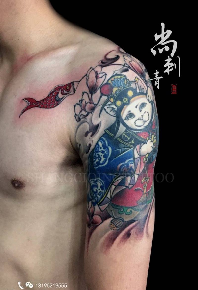 日式和风招财猫纹身图片_成品手臂传统清新动物纹身图案