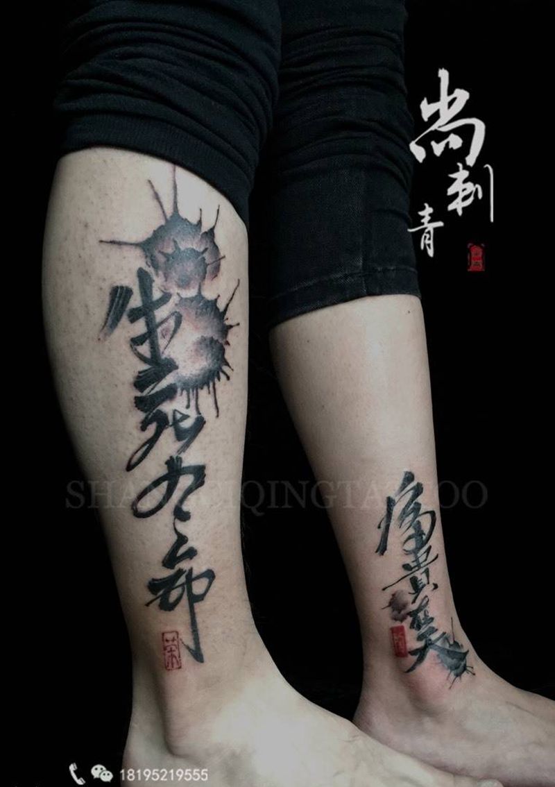 书法情侣纹身纹身图片_成品腿部国画传统字符纹身图案
