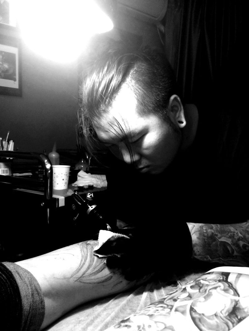 • T包小腿吹火男+阿多福纹身图片_腿部老传统新传统吹火男阿