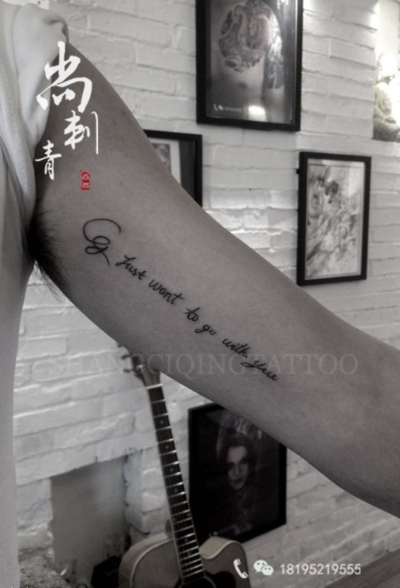 情侣小字母纹身图片_成品肩部手臂清新字符纹身图案
