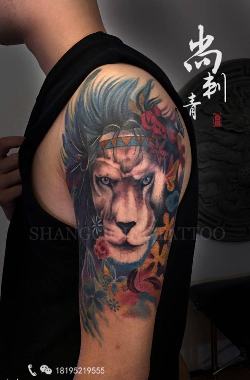 当前位置: 首页 >宁夏银川市纹身店-硬客(INK)tattoo studio纹身图案>狮子纹身图片_成品手臂欧美动物纹身图案