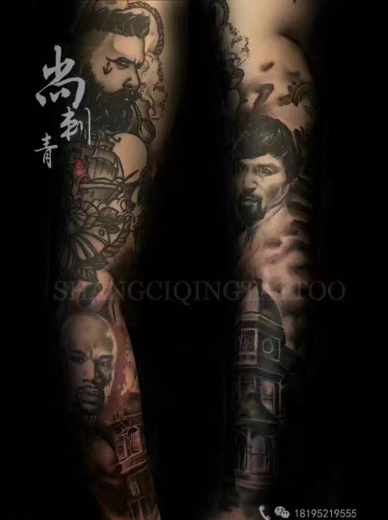 当前位置: 首页 >宁夏银川市纹身店-硬客(INK)tattoo studio纹身图案>花臂纹身图片_成品手臂欧美肖像传统原创纹身图案