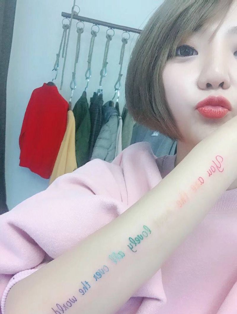 彩虹字母纹身图片_成品手臂欧美清新字符原创纹身图案