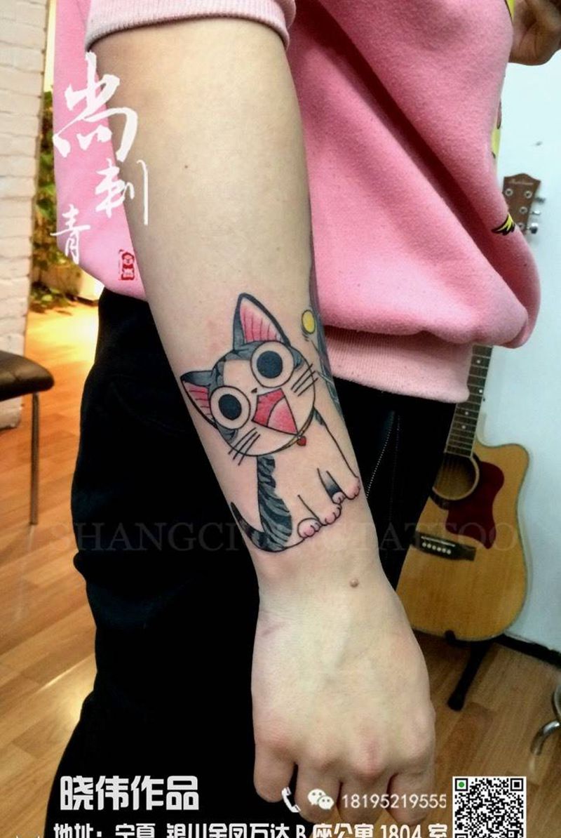 当前位置: 首页 >宁夏银川市纹身店-硬客(INK)tattoo studio纹身图案>喵纹身图片_成品手臂欧美清新动物纹身图案