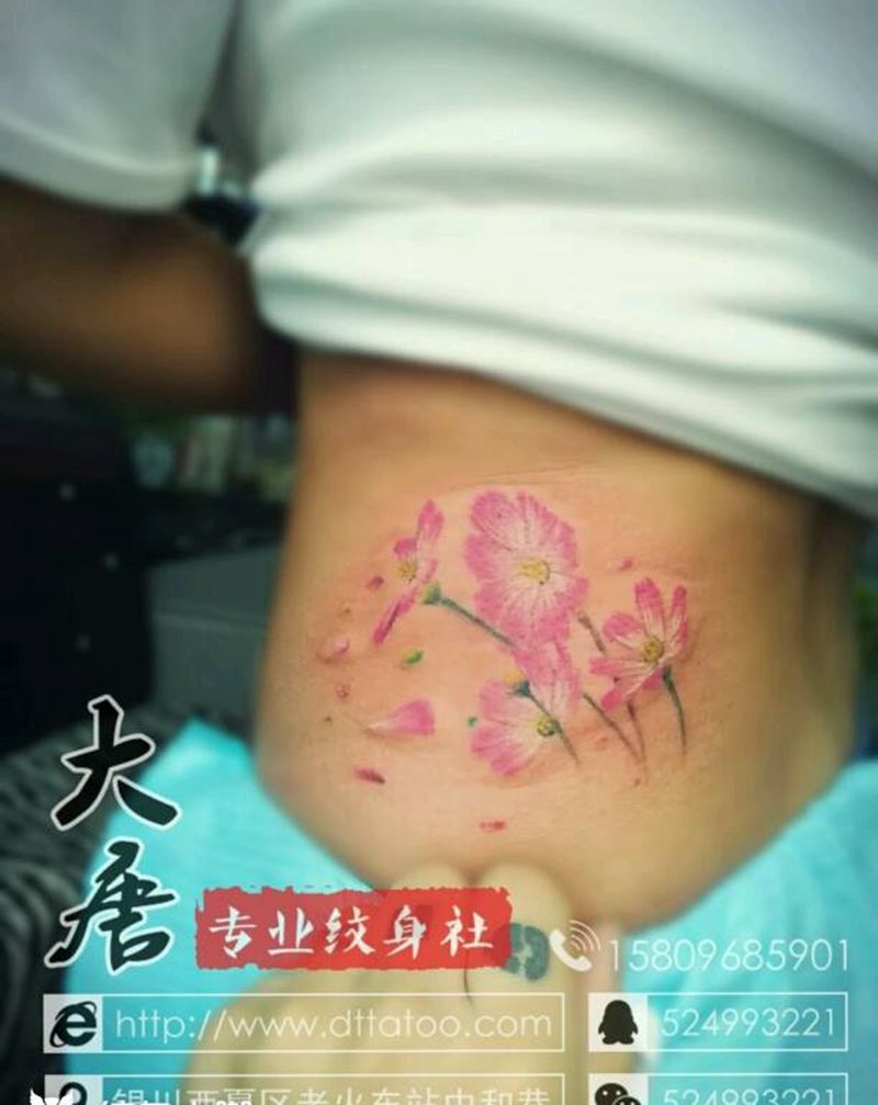 • T关于私处得爱!纹身图片_成品腹部清新字符图腾纹身图案