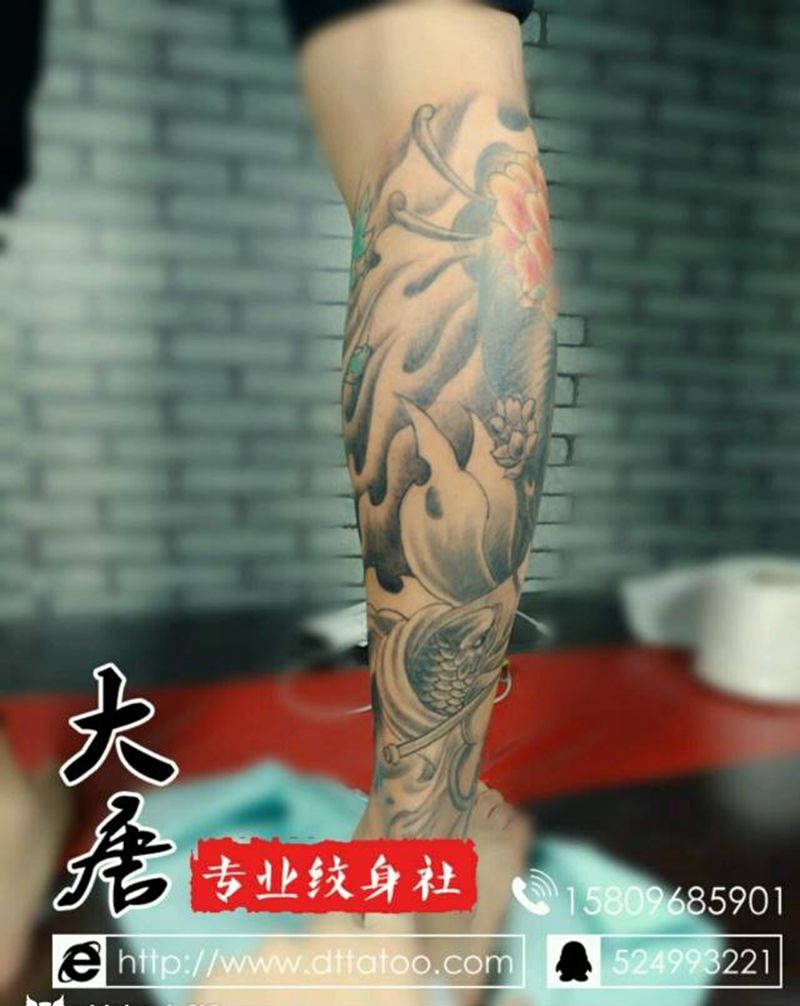 包小腿纹身图片_银川大唐纹身图案