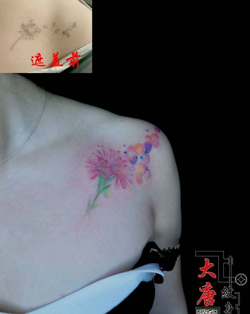 • 女性大花胸纹身_43张霸气漂亮的女性大花胸纹身图案作品