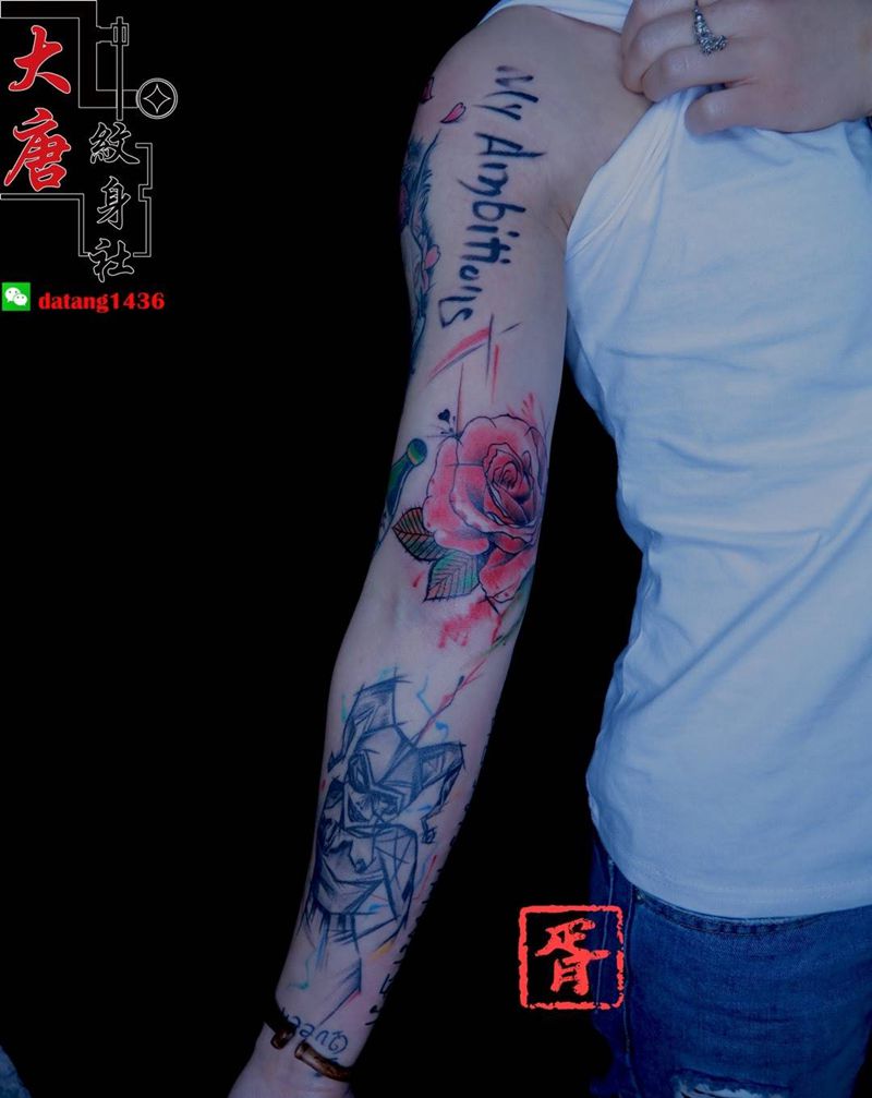 花臂纹身图片_银川银川刺青大唐社纹身图案
