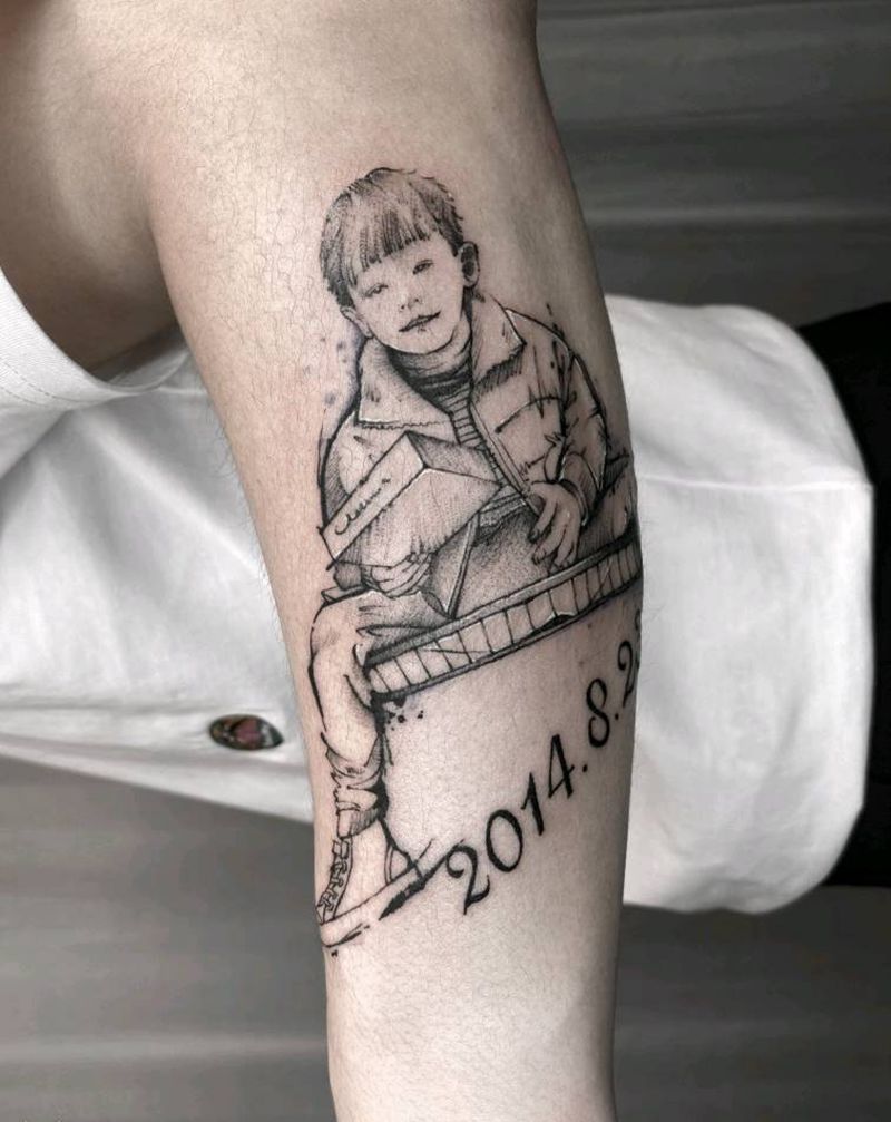 当前位置: 首页 >宁夏银川市纹身店-井河刺青处纹身图案>孩儿他爸的爱纹身图片_手臂点刺纹身图案