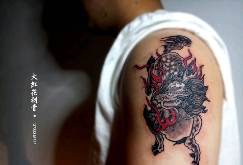 当前位置: 首页 >宁夏银川市纹身店-井河刺青处纹身图案>麒麟 | 傳統纹身图片