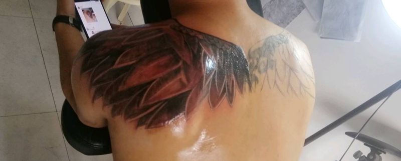 当前位置: 首页 >宁夏银川市纹身店-墨印阁刺青工作室纹身图案>翅膀遮盖纹身图片_背部纹身图案