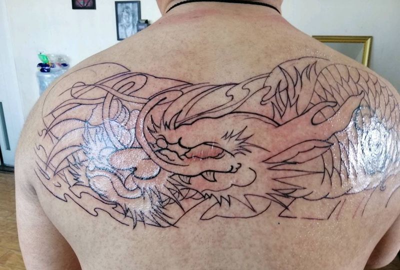 遮盖龙。。未完成纹身图片_背部老传统纹身图案