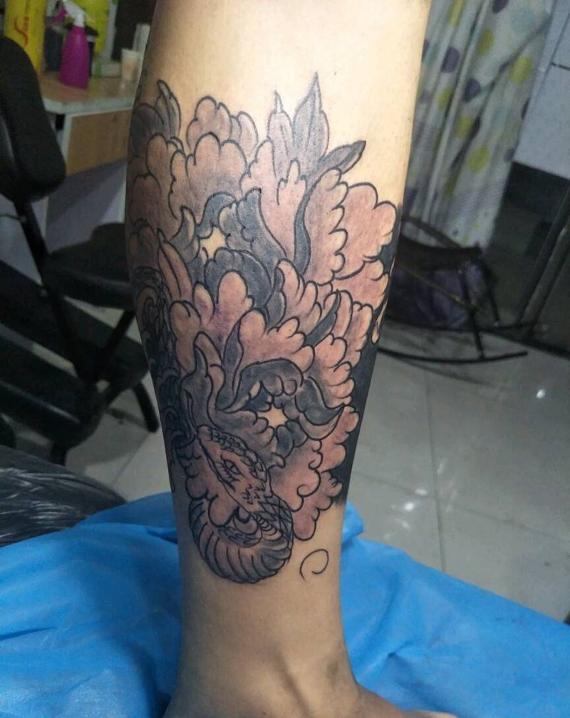 牡丹小腿纹身图片