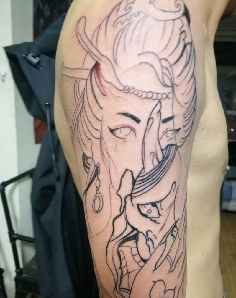 当前位置: 首页 >宁夏银川市纹身店-墨印阁刺青工作室纹身图案>艺妓纹身图片_肩部纹身图案