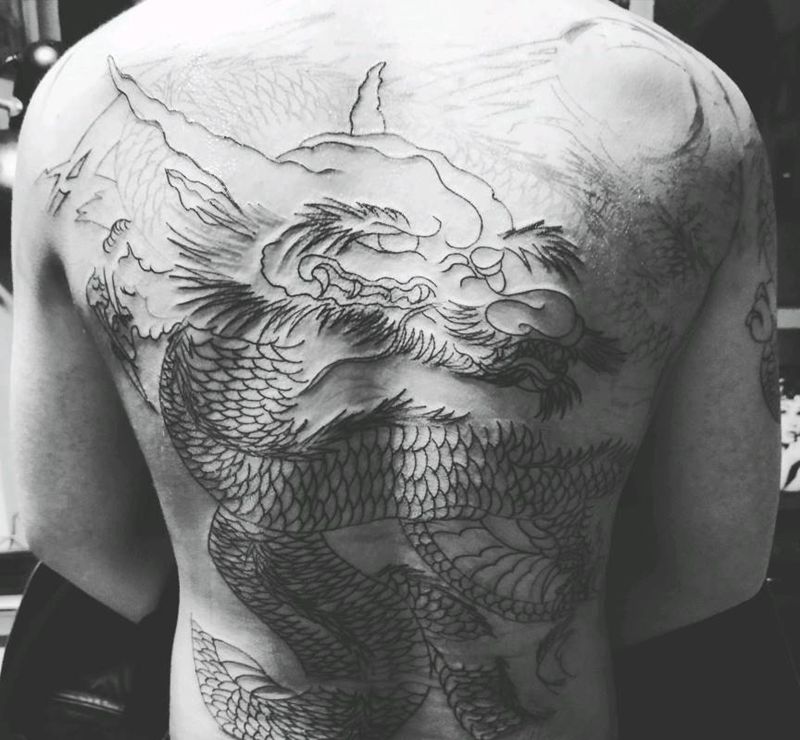 满背龙未完成纹身图片