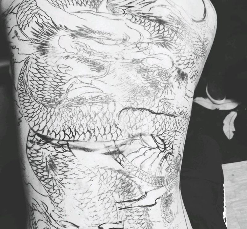 满背龙未完成纹身图片