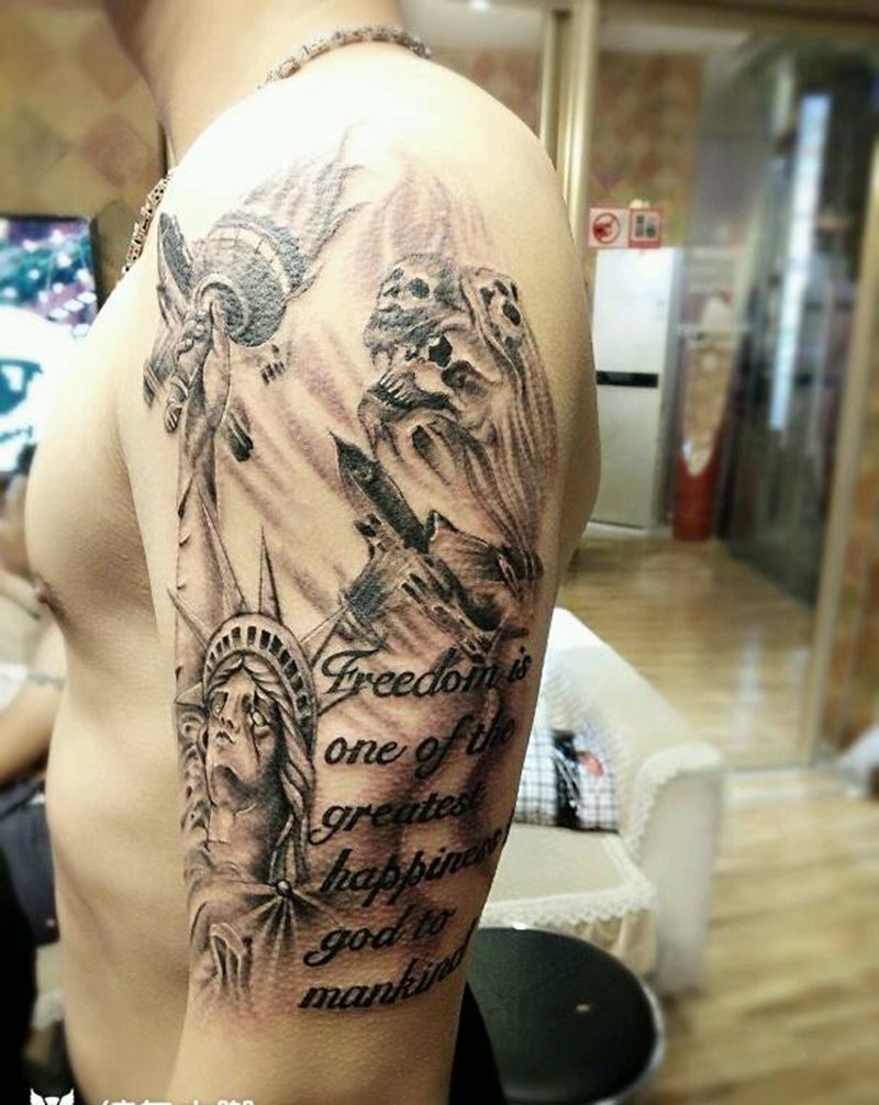 • 纹身吧推荐的披肩图腾半胛纹身图案作品展示