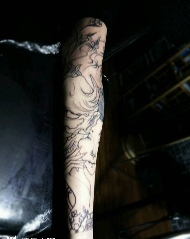 当前位置: 首页 >宁夏银川市纹身店-文涂刺青纹身图案>艺妓花臂线条纹身图片_臀部传统纹身图案