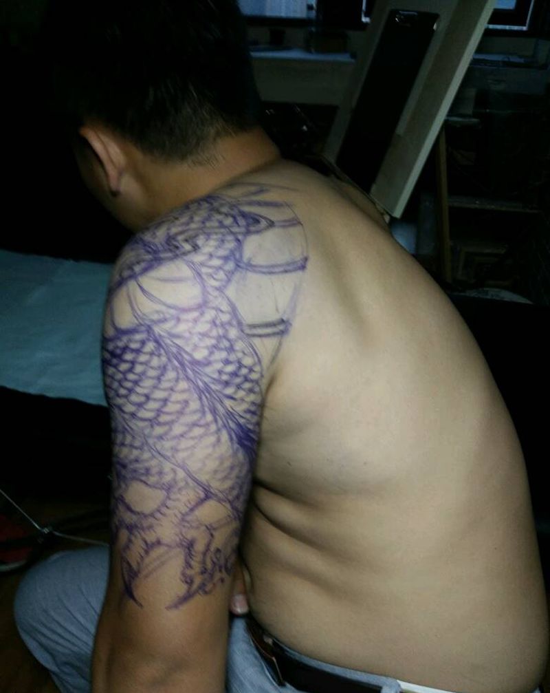 • 纹身吧推荐的披肩图腾半胛纹身图案作品展示