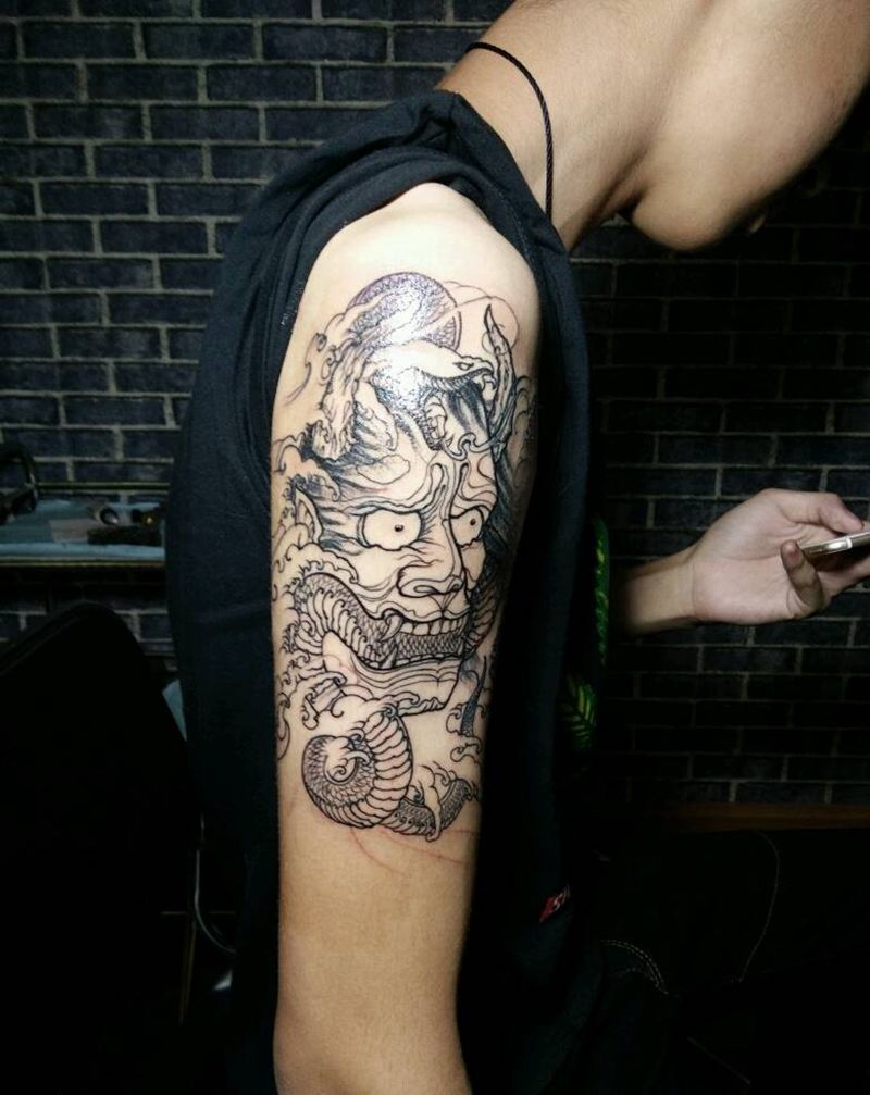当前位置: 首页 >宁夏银川市纹身店-文涂刺青纹身图案>般若线条风纹身图片