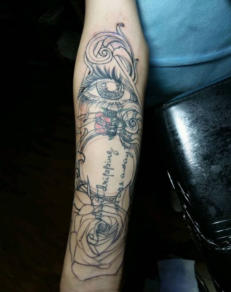 • 手背潮流时尚的玫瑰花眼睛纹身图案