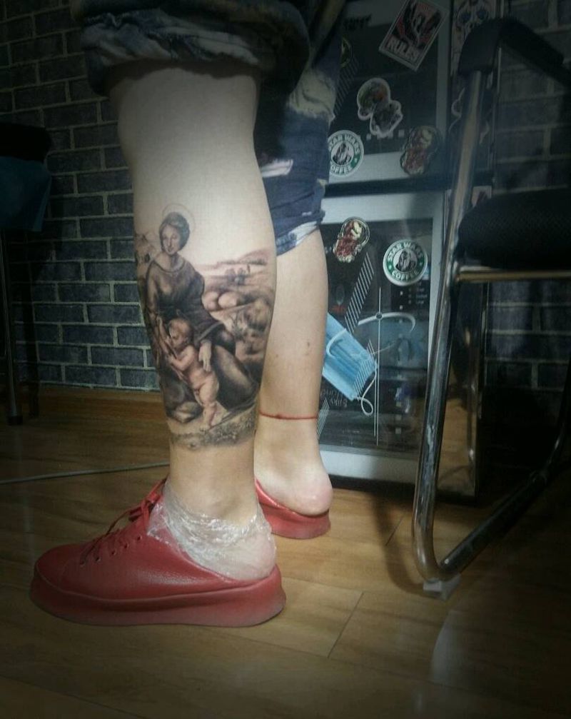 • T网红王老大花腿龙纹身图片_腿部新传统纹身图案