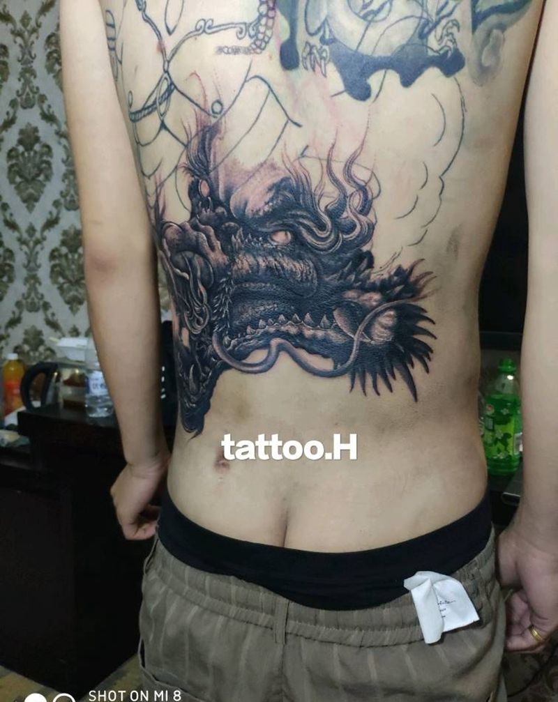 当前位置: 首页 >宁夏银川市纹身店-九隐刺青纹身图案>满背龙遮盖未完成纹身图片