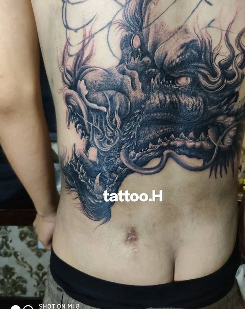 满背龙遮盖未完成纹身图片