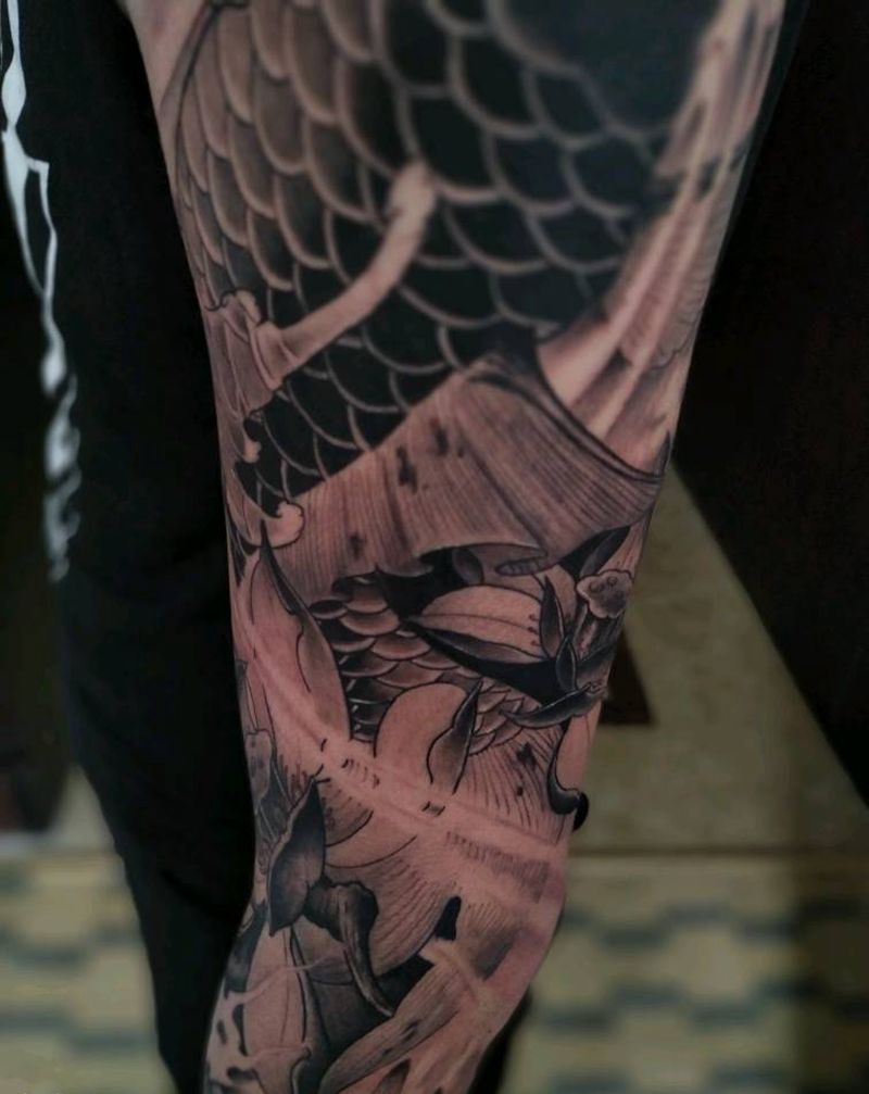 • T网红王老大花腿龙纹身图片_腿部新传统纹身图案