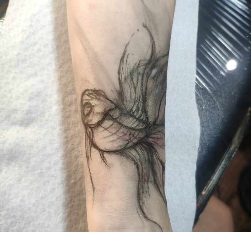当前位置: 首页 >宁夏银川市纹身店-九隐刺青纹身图案>金鱼纹身图片_手臂水墨水彩金鱼纹身图案