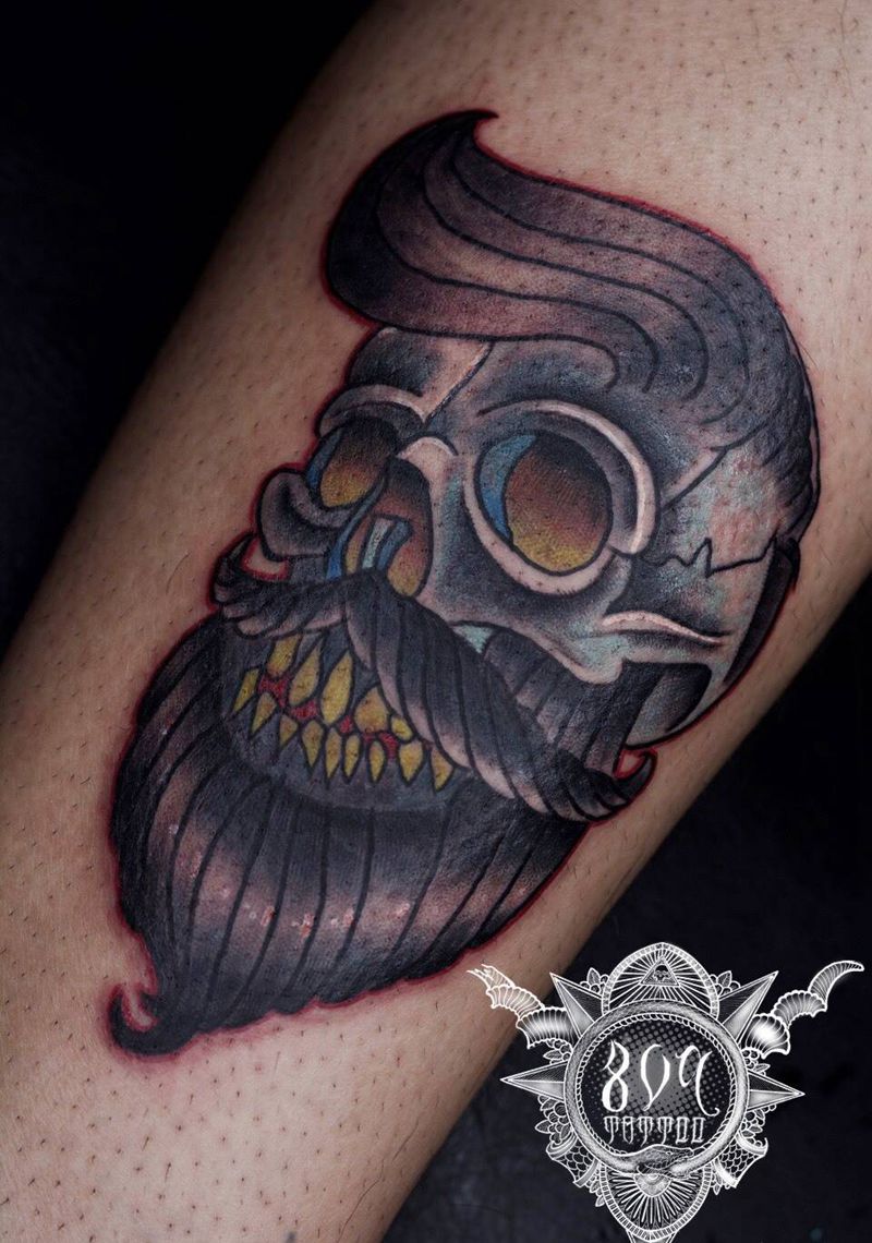 • T包小腿吹火男+阿多福纹身图片_腿部老传统新传统吹火男阿