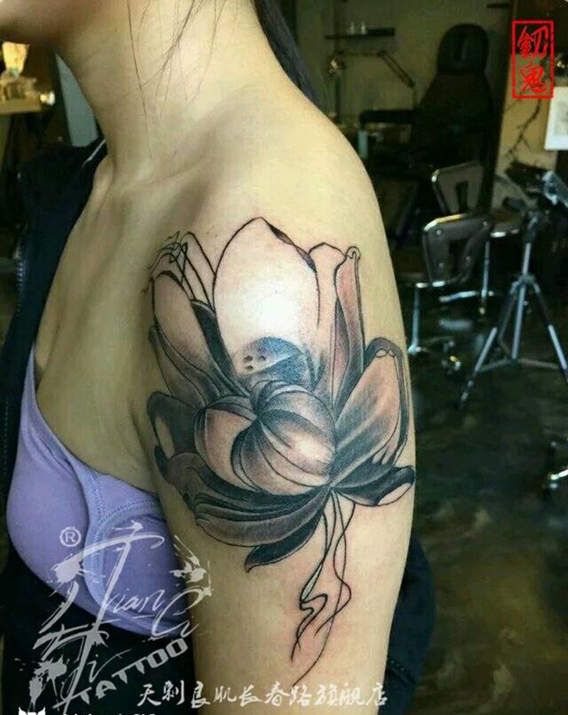 当前位置: 首页 >新疆乌鲁木齐市纹身店-魔彫刺青纹身图案>大臂荷花纹身图片_手臂植物性感美女成品纹身图案