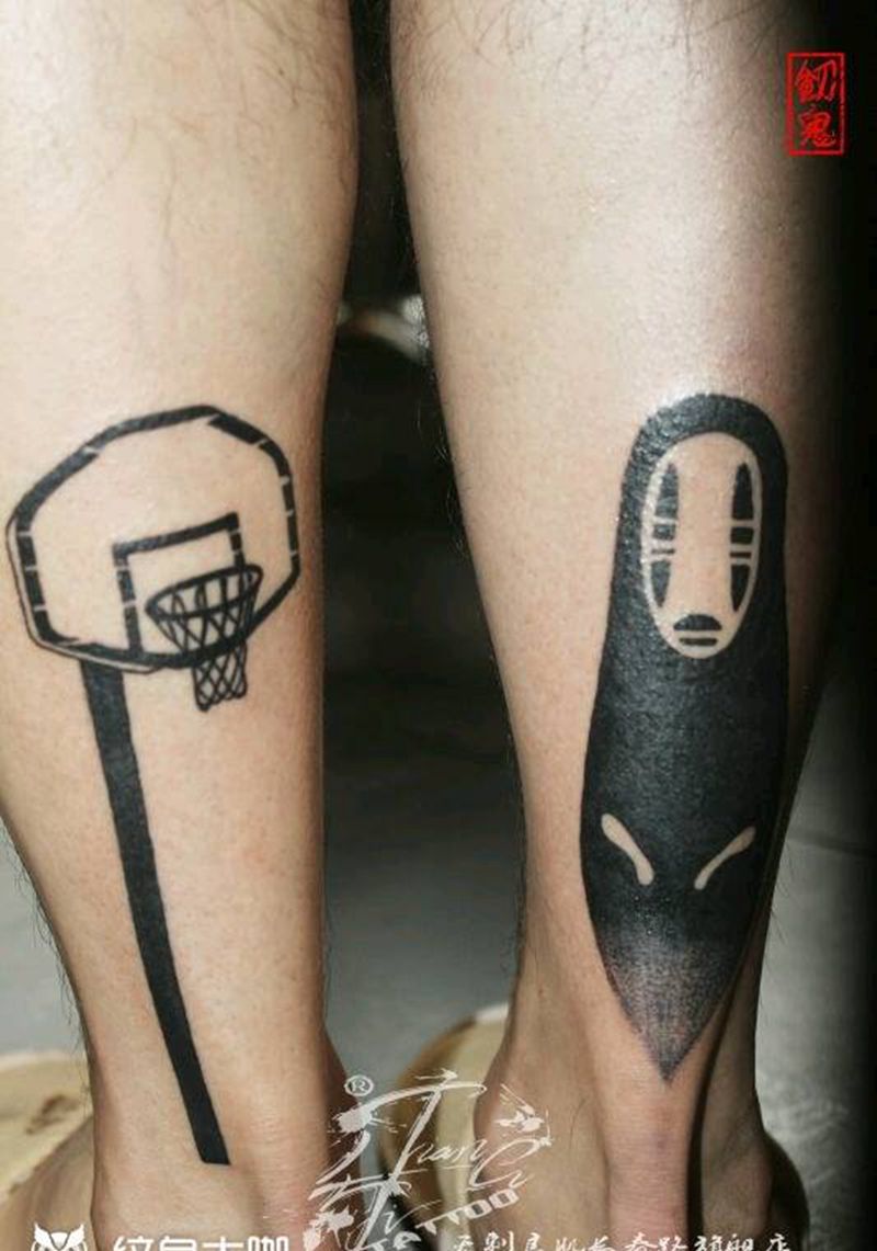 无脸男。篮球架。纹身图片_腿部脚部人物静物鬼神原创成品纹身图案