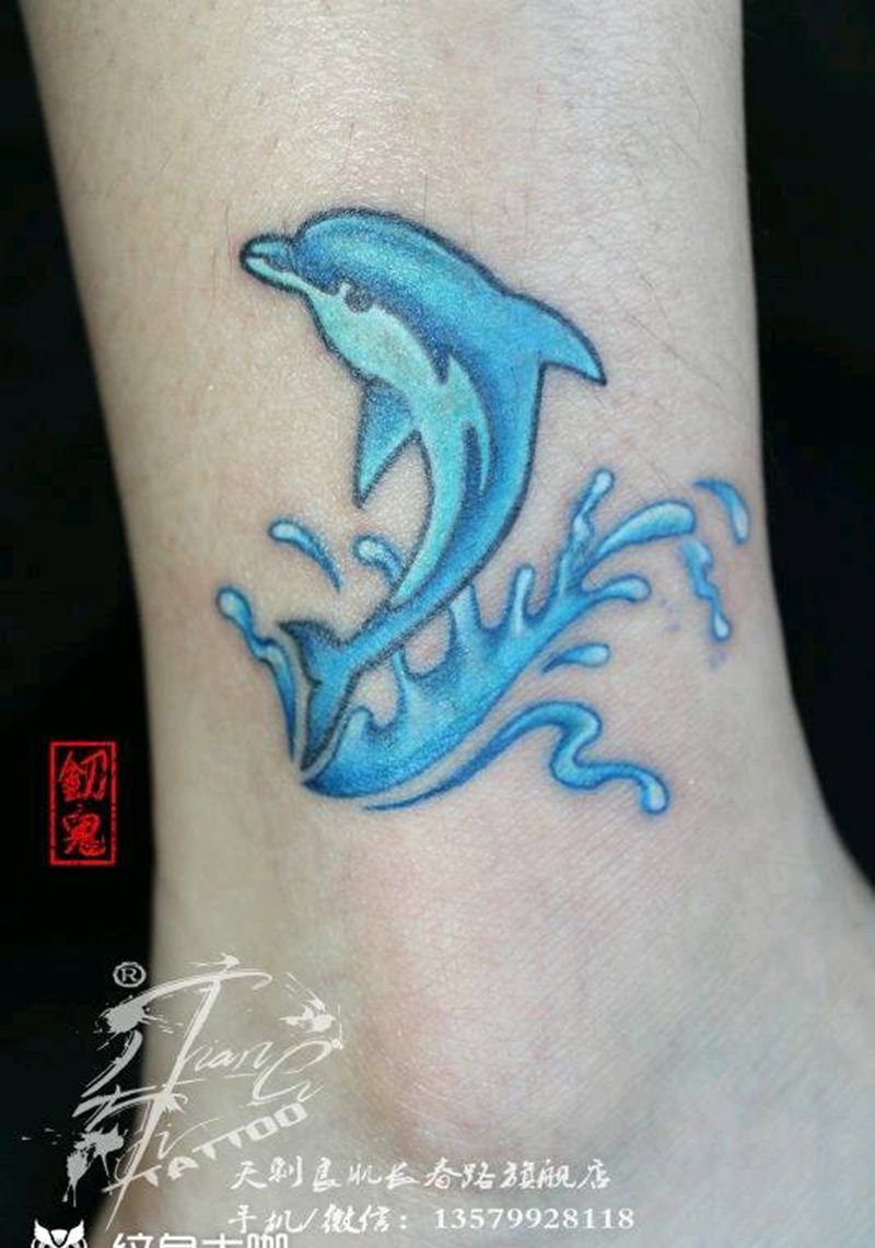 原图修改海豚纹身图片_腿部手部欧美动物原创性感美女成品纹身图案