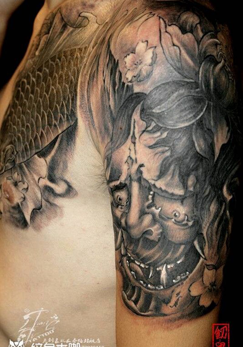 当前位置: 首页 >新疆乌鲁木齐市纹身店-魔彫刺青纹身图案>遮盖鱼纹身图片_肩部胸部手臂传统植物宗教成品纹身图案