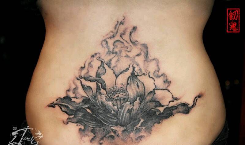 • 时尚性感的腹部莲花纹身图案