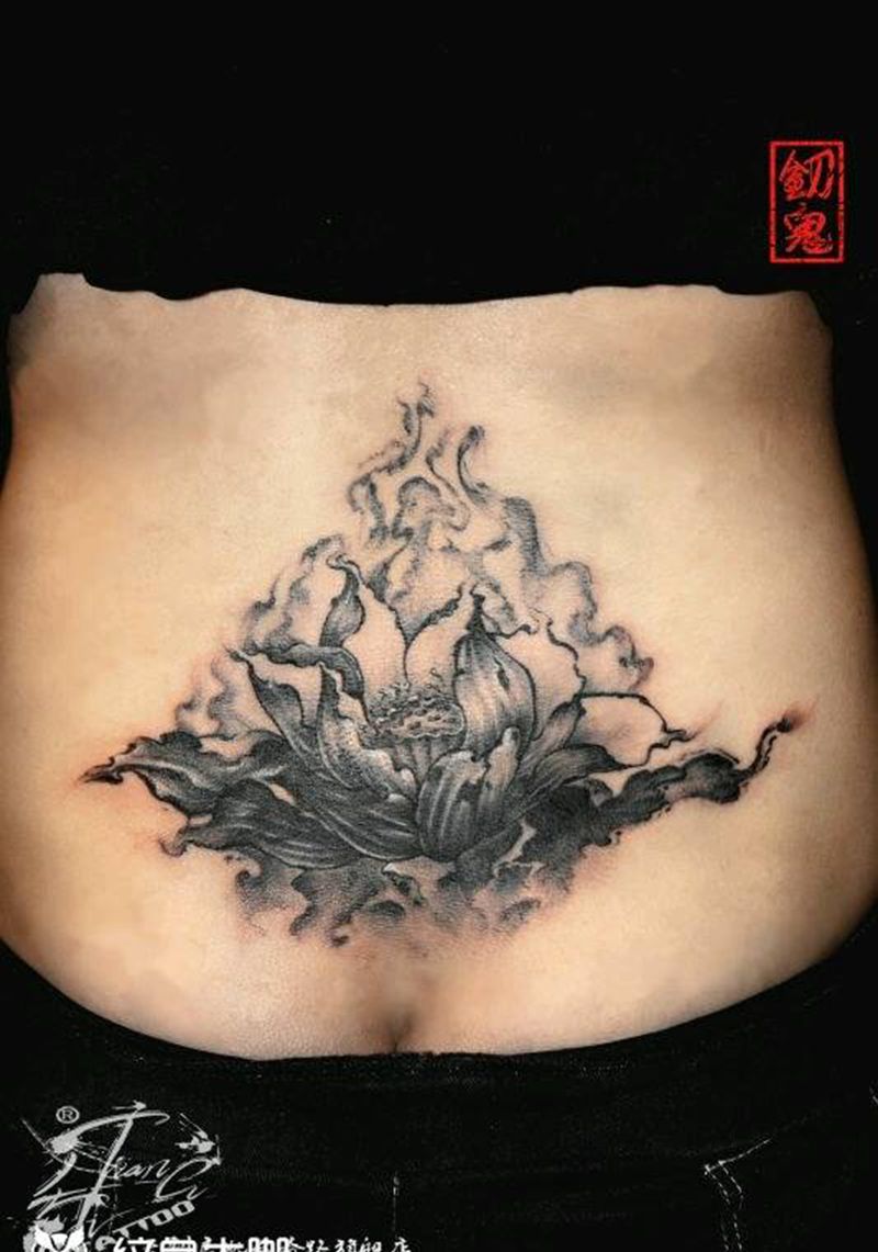 • 时尚性感的腹部莲花纹身图案