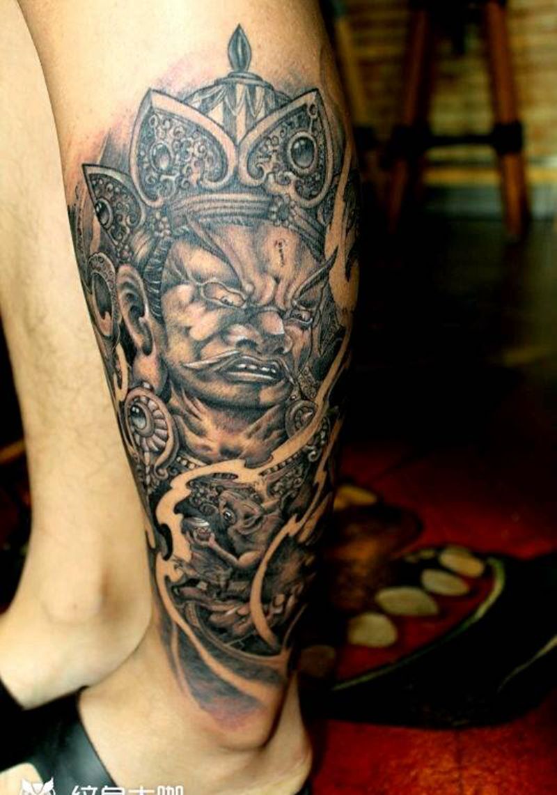 黄财神纹身图片_腿部传统鬼神宗教成品纹身图案