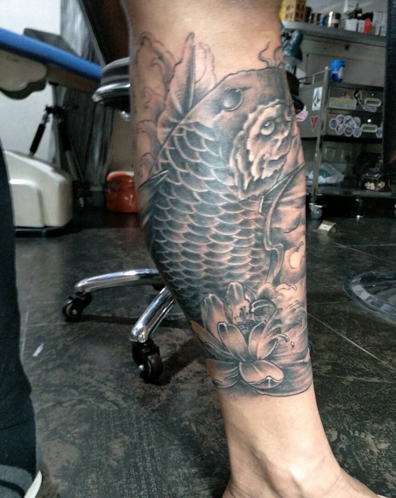 • T网红王老大花腿龙纹身图片_腿部新传统纹身图案