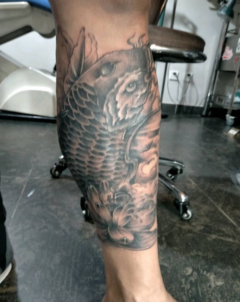 • T网红王老大花腿龙纹身图片_腿部新传统纹身图案